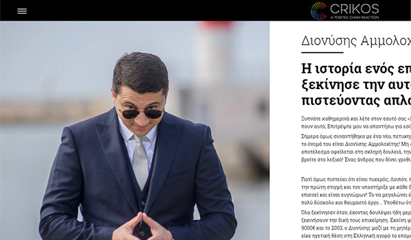 Interview with Dionysis Ammolochitis, CEO of Manifest, on CriKos: “The story of a successful businessman who started his empire from scratch, simply believing in himself!”